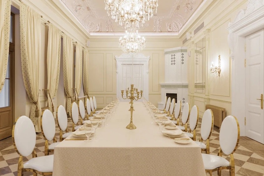 Ресторан "Gourmet" при пятизвездочном бутик-отеле "Villa du Prince D`Oldenbourg", который откроется осенью 2024, расположен в старинном здании XIX века, обрамленном парковой зоной с панорамным видом на Неву.